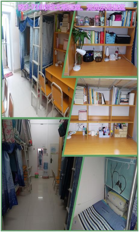 612寝室作为市级文明寝室的获得者,每日清洁检查中成绩优异,五位寝室成员不仅学习名列前茅,而且积极参加各种活动,在院校员工组织中担任主要员工干部。712寝室的学习氛围浓厚,注重专业的理论与实践结合,积极参加院、校、市、省的各类竞赛活动,并获得佳绩。716寝室的四位成员中有3名党员,积极帮助周边的同学,积极为他人解决学习生活上的困难。
