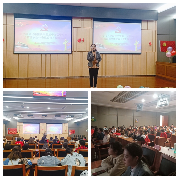 首先,于频副书记介绍了最近这几天发生的几件大事,例如2019年10月10月28日至31日在北京召开的十九届四中全会、5G开始商用等,于书记希望通过了解这些事件激发大员工们的爱国热忱,深入了解我国国家制度和国家治理体系的显著优势,感受中国发展的加速度,从而为实现中华民族伟大复兴而勤奋学习。接着,组织在场师生集中观看了《中国共产党第十九届中央委员会第四次全体会议公报》的视频。最后,现场的同学纷纷发表感言,不少同学们都认为:70年的辉煌成就足以彰显中国特色社会主义制度和我国国家治理体系的显著优势,为了实现中华民族伟大复兴必须继续大力推进国家治理体系和治理能力现代化,每个人都积极为祖国的发展贡献绵薄之力。