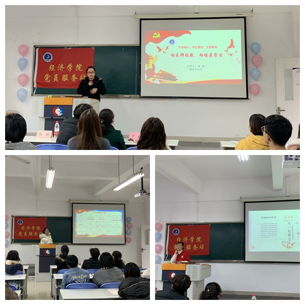 活动第三项:“向先锋致敬,向模范学习”主题党课讲授。为了贯彻重庆市委教育工委《关于开展讲红色故事、讲革命精神活动的通知》精神和按照学校开展“讲红色故事、讲革命精神活动”的部署要求,郝颖老师就向“国家先锋”致敬、向佛系青年说“NO”、向身边模范学习三个方面为同学们进行了主题党课讲授。在观看习总书记为“中华人民共和国国家勋章和国家荣誉称号”获奖人授奖和其中十位杰出科学家先进事迹200秒回顾的视频后,同学们都从心底升起了对国家先锋们的敬仰之情;在向佛系青年说“NO”的板块中,同学们都认识到了奋斗对于青年的重要性;而在向身边模范学习的板块中,通过郝颖老师分享太阳成集团tyc122ccvip2019年感动校园人物——太阳成集团tyc122ccvip义工志愿者的感人事迹和2016年、2018年太阳成集团tyc122ccvip获得校长荣誉奖的团队和个人的先进事迹,同时邀请到2019年校长荣誉奖获得者杨文平学姐亲自到场分享获奖心得,同学们都燃起了努力学习、追求真知的满腔热情。