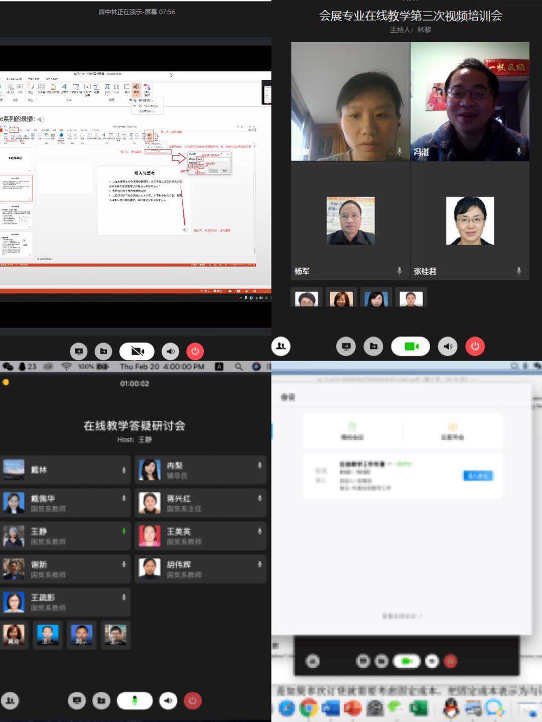培训形式多样化。技术指导老师开展了形式多样的培训,经济系技术指导教师唐中林在企业微信上组织《如何在PPT中进行音频录播》培训视频会,通过课件展示、实操演示,给大家详细讲解音频制作、保存及播放问题,并就企业微信使用过程中的常见问题进行了一一解答。会展专业冯湛老师开展了在线教学系列讲座,重点讲解操作技巧,包括:创建课程基本信息、建立单元学习内容、上传教学资源、开学教学互动和课程活动、查看员工平台使用次数和完成度、手机版优慕课AAP使用等相关内容。国贸系王静老师则围绕在线教学的课前准备、课中讲授、课后指导三方面展开培训,并展示了学校在线教学平台的各项功能,对教学过程中可能遇到的问题和突发状况进行了探讨。贸经系王辉老师培训了如何使用屏幕分享、文件分享以及出现设备故障如何解决,解释了ppt录制和幕客使用中出现无法录制和投屏等问题。除此之外,各技术指导老师跟“一对一”帮扶对象随时保持联系,对出现的问题进行耐心答疑和交流。各位老师还在培训中模拟上课场景,进行现场演示,并就他们在演示过程中遇到的一系列问题进行了提问,培训老师进行逐一回答,大家共同讨论,对在线教学技术有了更深入的学习。