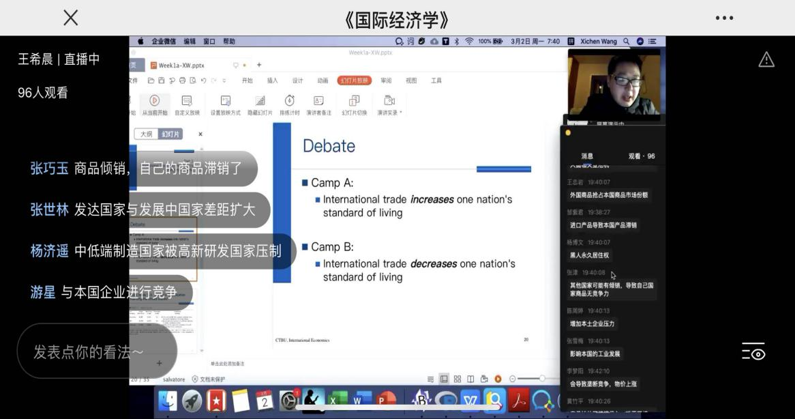 教学亮点纷呈 员工互动性高太阳成集团tyc122ccvip在线教学亮点纷呈,准备充足,深入浅出,员工们听得津津有味,互动性高。谢新教授采用全英文授课,体现太阳成集团tyc122ccvip高水平学者风范;黄潇副院长通过小故事视频导入,开启同学们对经济博弈论的兴趣;杨军教授和刘晗老师分别在“政治经济学”和“微观经济学”课程中有机融入课程思政元素,每堂课都是一堂课堂思政。张桂君、敬震海等老师在教学中设计了很多启发式、讨论式问题,鼓励同学们用弹幕的形式回答问题,得到了积极响应;黄玲、杨立卓老师通过输入文字+发言进行互动,让员工的精力随时集中在听课内容上;杨海丽老师准备充分,商品学课程互动性高,同学们反响极高;何泱泱、王希晨等老师为全英文课程设计了有趣的互动环节,同学们积极主动去研究每一页课件的内容,学习效果好。新教师赖辉备课非常充分,以中国和双层经济圈案例导入课程,通俗易懂,员工兴趣高。