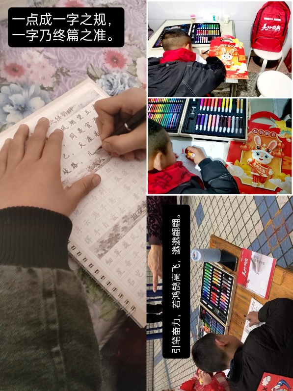 春节期间,社团志愿者们带着爱心大礼包与小朋友们共绘一幅画、临写一首诗词、一同张贴春联,与结伴小朋友组建“美好小组”。